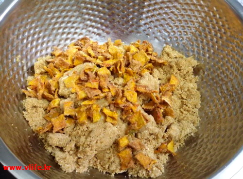 말린 늙은 호박 싹 쓸어 모아 쿠키를 만들었습니다.