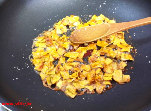 마지막에 살짝 졸였어요. 쫀득 바삭해요. 그냥 먹어도 맛있어요.