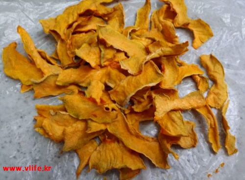 죽만 먹기 질려서 늙은 호박을 얇게 썰어 말렸어요.