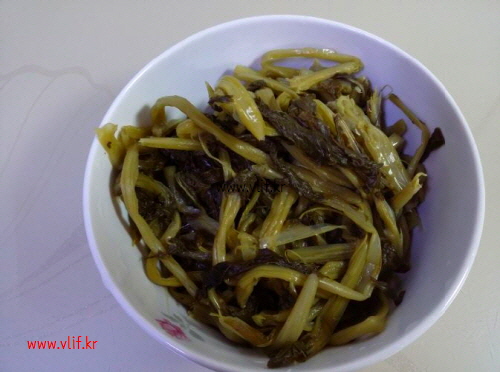 준비물; 무청 시래기, 짜파게티, 고춧가루, 설탕, 된장, 후춧가루, 기름 약간