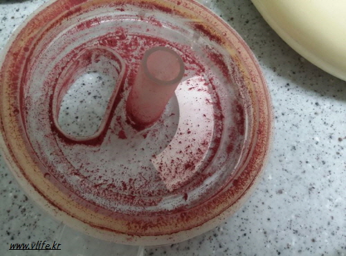 다행히 물 들지는 않아요. 헹군 물 모아 호떡 반죽 만들 때 사용했더니 예쁜 분홍 호떡이 됐어요.