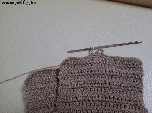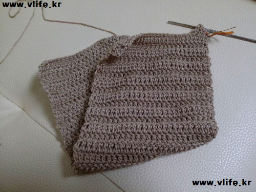 덮개 짧은 뜨기 끝 연결해서 어깨끈 떠 반대쪽에 연결