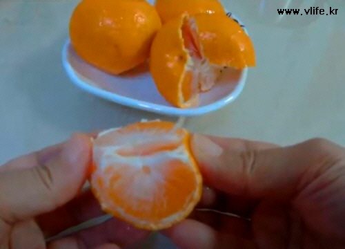 이만한 크기의 귤은 거의 이렇게 3조각으로 나뉘더군요.