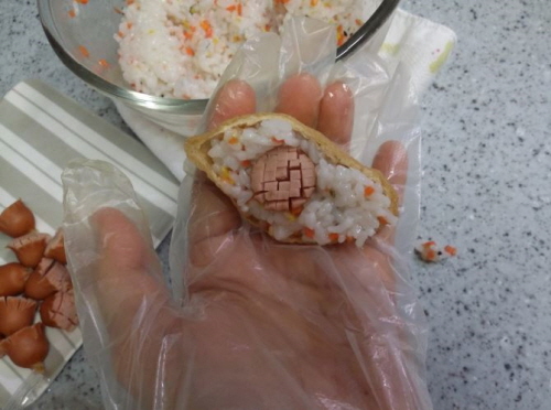 준비물; 유부초밥 세트, 밥, 당근 비엔나소시지
