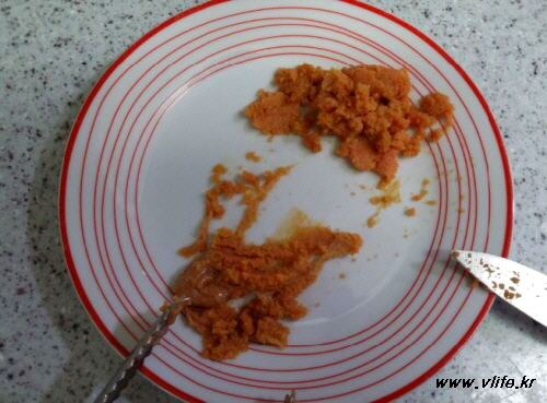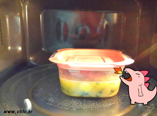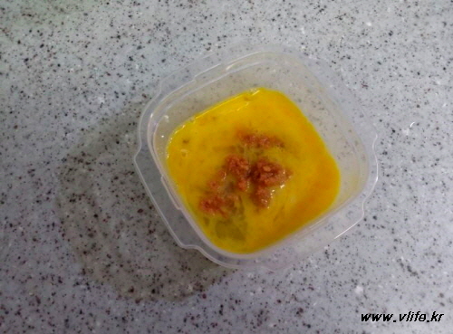 잘 섞는다고 섞어도 전자레인지에서 익는 동안 명란젓이 어느 정도는 바닥에 가라앉더군요.