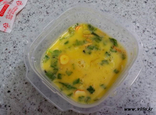 각종 채소 다져 넣으면 좋은데 귀찮아서 라면 야채 스프 넣었어요, 짱 좋은 방법이에요. ㅋ