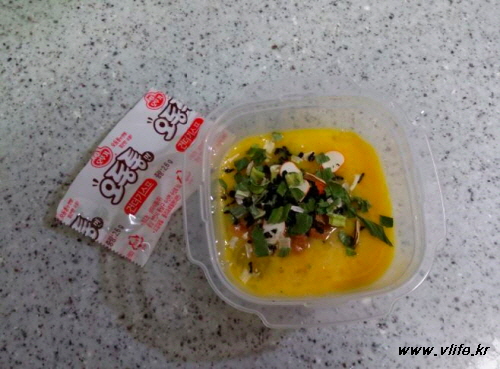 준비물; 달걀, 명란젓, 라면 야채 스프(채소 대신)