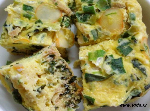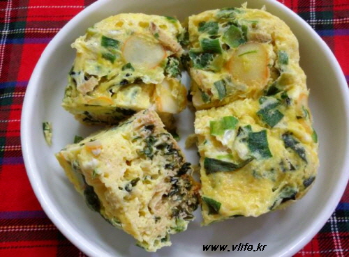 간 맞을 만큼 넣고 달걀 1개당 달걀 1/2 정도의 물을 섞어