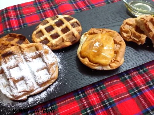 와플팬에 모닝빵 굽기, 이렇게도 굽고