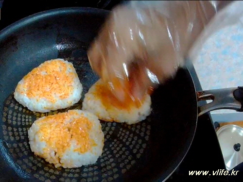원래도 구운 주먹밥은 맛있는 법, 매콤한 고추기름에 구웠더니 맛이 세 배, 네 배~