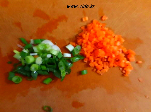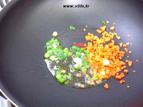 기름 두르고 파 먼저 넣고 잠깐 볶다가 당근 넣고