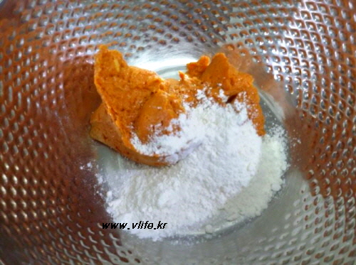 부침가루는 마(최소한의 물을 넣고 간)가 엉길 정도만 넣었고, 밀가루 넣을 때는 소금으로 간을 해요.