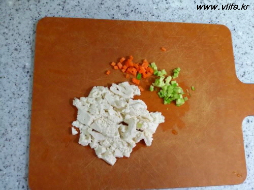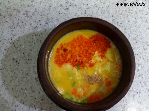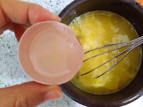 물 양은 달걀의 1/2인데 저는 좀 빡빡한 느낌이더군요. 두부가 들어가서 일까요?