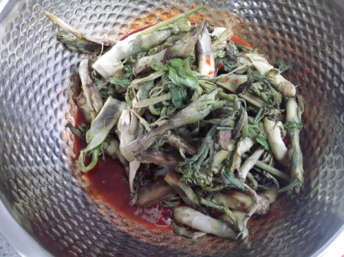 준비물; 두릅, 고추장, 석류 진액(매실 등 아무거나), 물엿, 소금, 참기름, 깨소금
