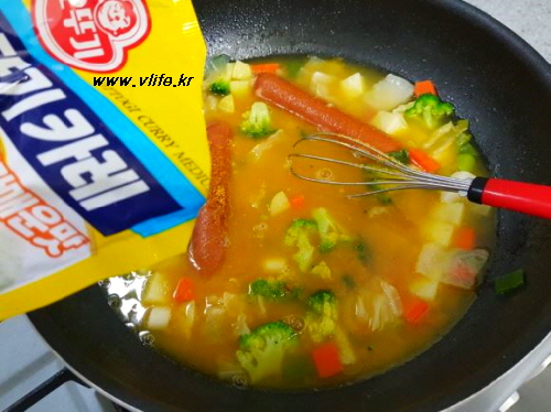 카레 가루 덩어리지지 않게 잘 풀어 넣고