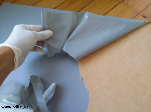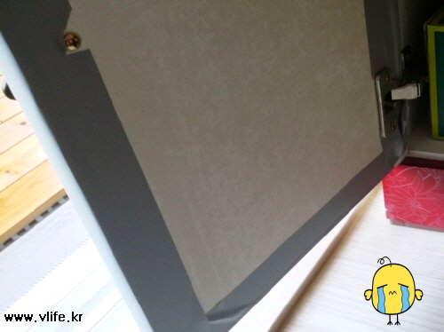 원래는 자줏빛, 낡아서 떼어 내고 회색 시트지 붙였는데 보다시피 엉망진창