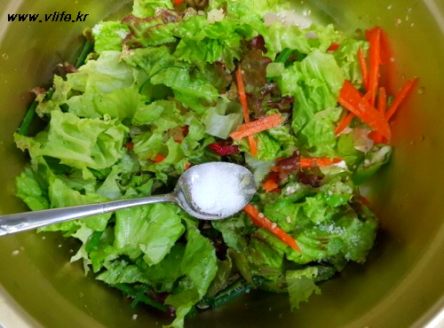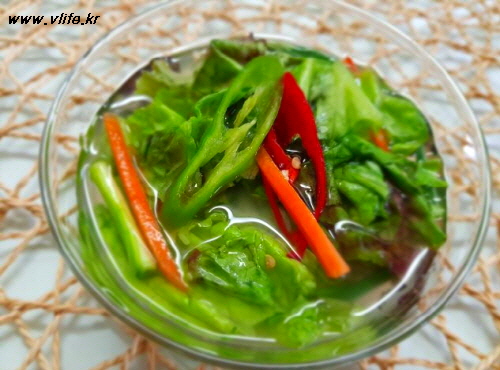 준비물; 상추, 실파, 당근, 청양고추, 마늘, 생강, 소금, 뉴슈가(설탕), 밀가루