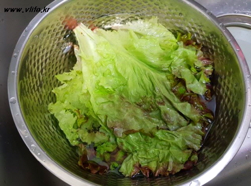 언니가 텃밭에서 무농약으로 지은 거라 간혹 달팽이가 있어 식초 물(달팽이, 미안 ㅠ)에 5분쯤 담가서 여러 번 깨끗이 씻어 물기 빼 두었어요.