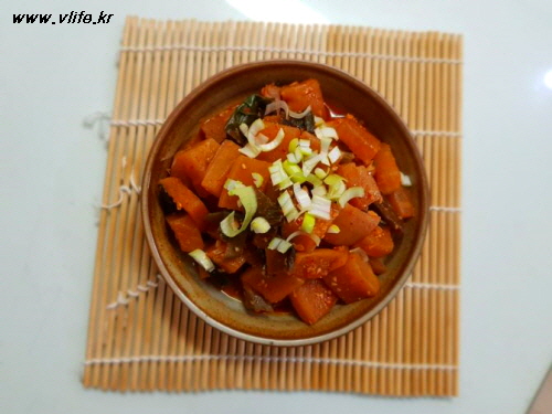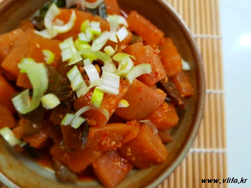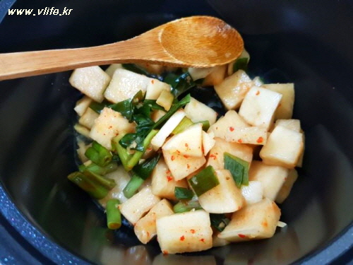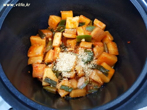 식용유 두르고 달달 볶다가 약불에 뚜껑 덮어 익히며 가끔 저어 줘요.