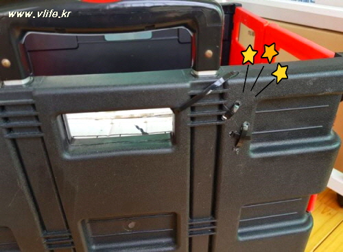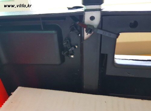 구멍이 작아 케이블 타이가 안 들어가 굵은 드라이버로 넓혀서 타이로 묶었어요.