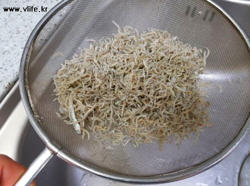 멸치의 비린내도 없애고 더 맛나라고 마늘 조금 넣었어요.