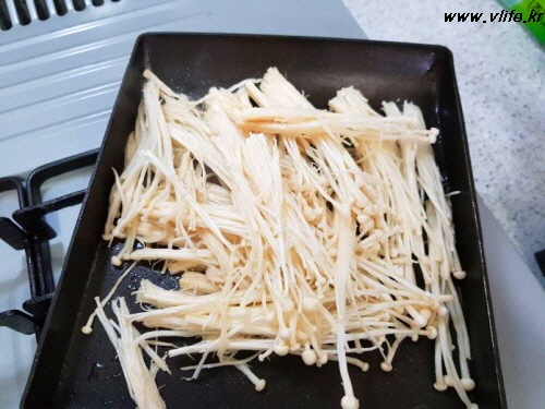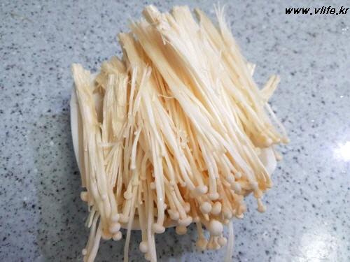 팽이버섯 밑둥 잘라 얼른 헹궈 몇 가닥씩 갈라놓고