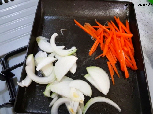 당근과 양파도 소금 조금씩 넣고 잠깐 볶았어요.