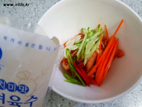 냉면 육수 활용해서 초초간단하게 만들어요.