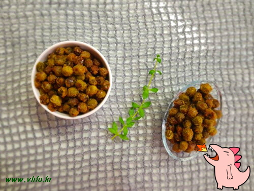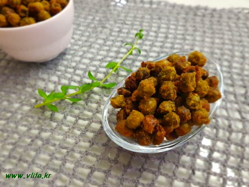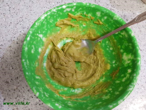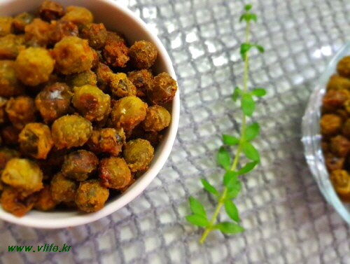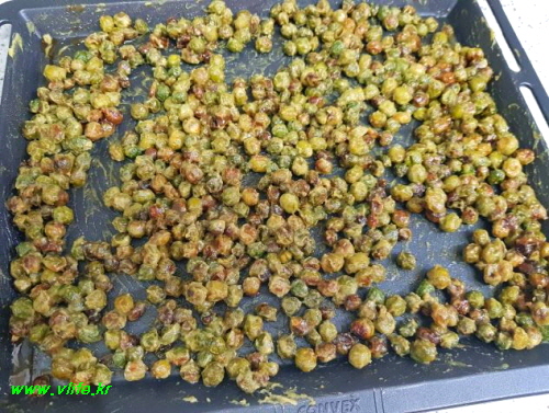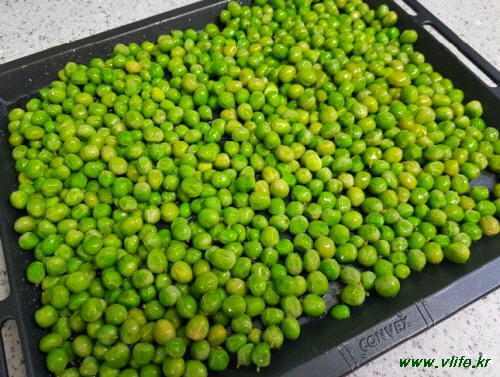 준비물; 완두콩, 소금, 맛술, 식초, 가루 겨자, 가루 와사비, 올리브 오일, 올리고당