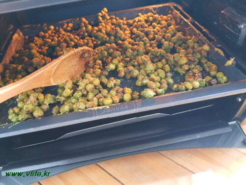 200도 오븐에 15분 2차 굽는데 바삭하도록 중간 중간 뒤섞어요.