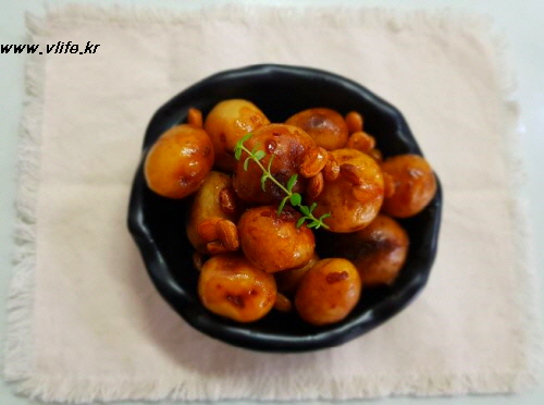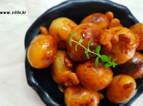 준비물; 알감자, 울타리콩, 흑설탕, 물엿, 조림간장(진간장)