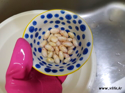 알감자 울타리콩 조림, 무심코 넣은 콩이 대박