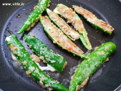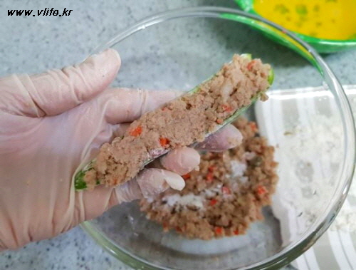 복잡하고 시간 걸리는 속재료 준비 때문에 가끔 먹고 싶어도 참았던 고기 고추전.