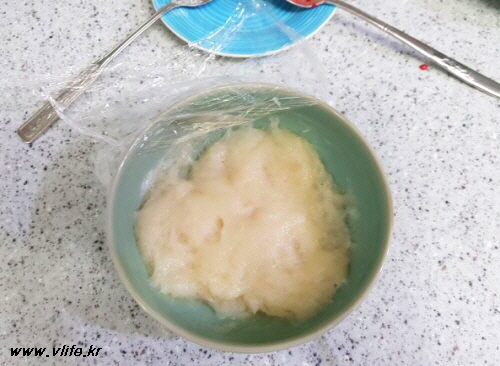 '이게 떡이 될까~' 싶은 상태, 잘 섞어 다시 1분 돌리고 꺼내 섞고 다시 1분 돌려