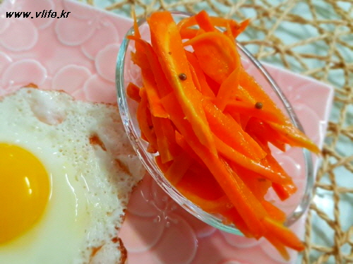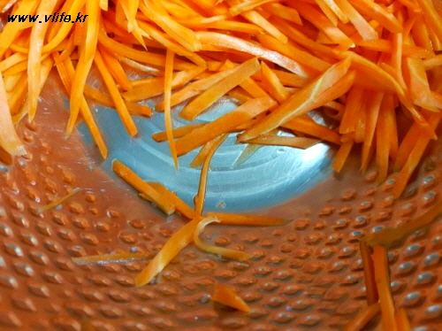 저는 감자칼로 저미고 싶었는데 언니가 키워 보내준 당근이 잘아서 잘 안돼 채 썰었어요.
