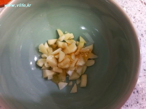 마늘은 굵직하게 다져 꿀과 섞었고요.