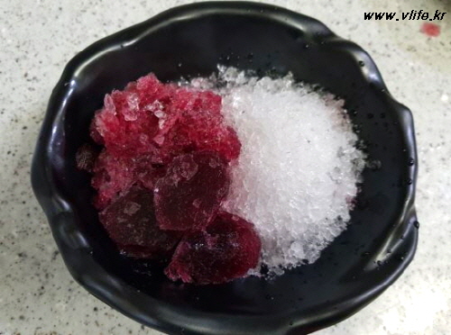 준비물; 와인 얼음, 와인 찰떡, 와인 젤리, 팥, 시럽