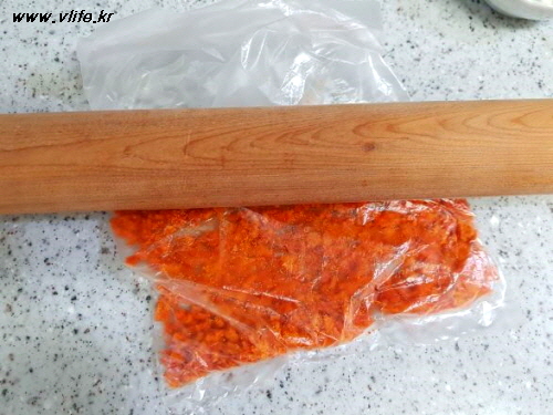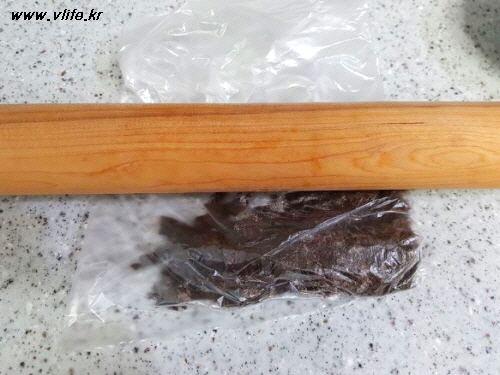 역시 밀대로 밀기(뭐, 납작한 무언가로 으깨도 될 듯^^)
