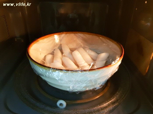 떡볶이 떡은 물 조금 부어 전자레인지에 말랑하도록 돌렸어요.