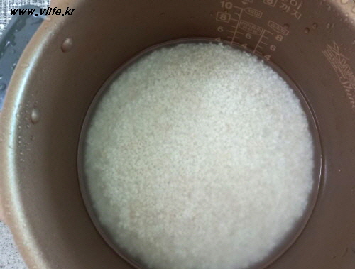 씻어 둔 쌀 위에 펼쳐 담고