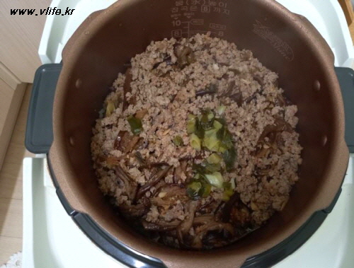 식용유 약간에 간 돼지고기 볶다가 마늘, 간장, 맛술이나 소주, 깨소금 넣어 볶아