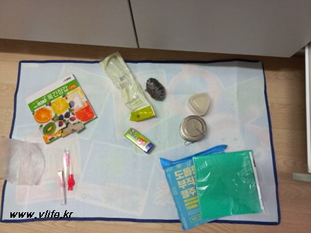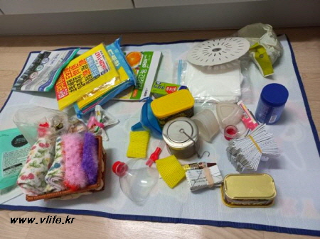 혹시 쓸까 싶어 두었던 몇 년 된 케이크 초와 비닐봉지가 쓰레기로 남았어요.