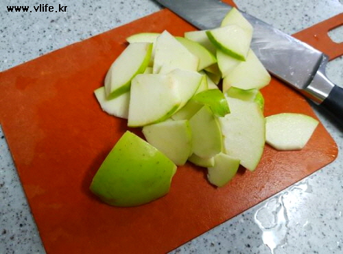 사과는 껍질채 썰었고