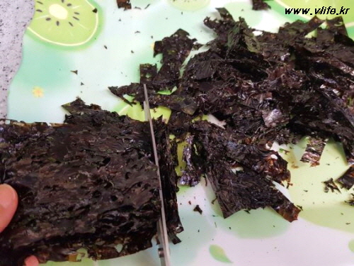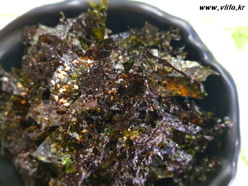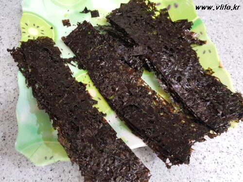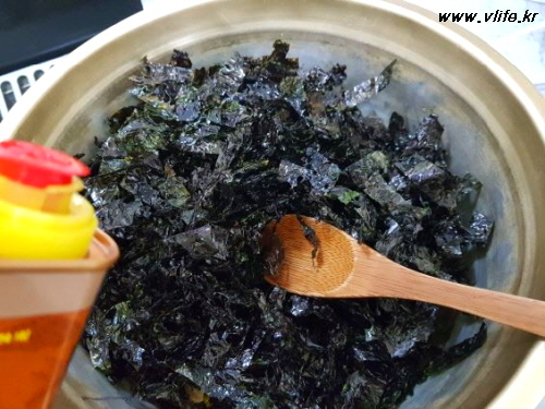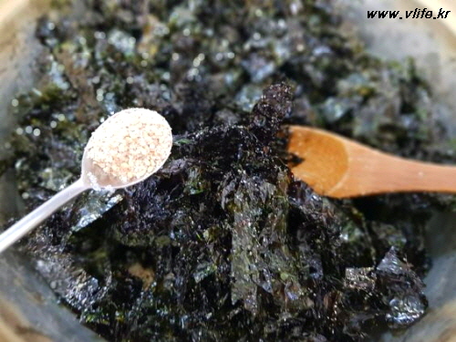 준비물; 김, 올리브유, 참기름, 설탕, 소금, 깨소금