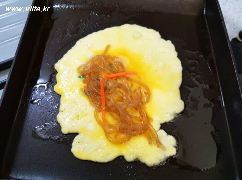 달걀에 당면을 아예 섞어 하면 그런대로 모양이 나올 것 같지만 처음 계획했던 대로 그냥 밀어붙이기.