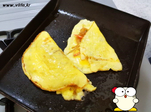 반 접어 올려 잠깐 더 익혀 꺼냈어요.