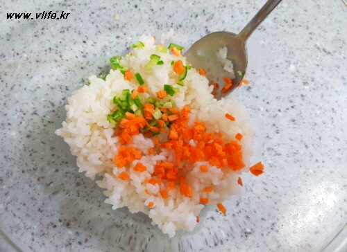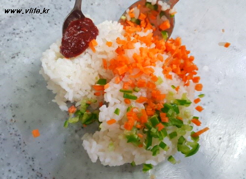 준비물; 밥, 스트링 치즈, 당근, 청양고추, 고추장, 참기름, 소금, 식용유
