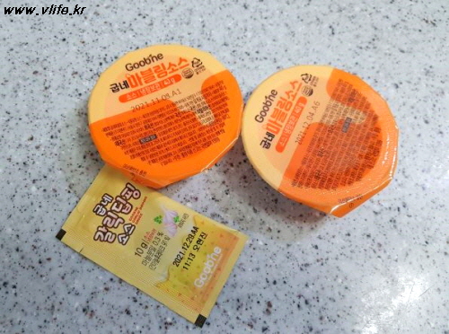 치킨 먹고 나면 소스가 한두 개씩 남아요.