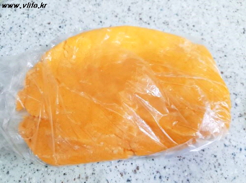 일회용 봉투에 고르게 펴 담아 냉장고에 1시간쯤 두었어요.