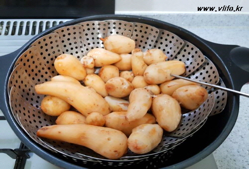 채반에 얹어 푹 쪄서